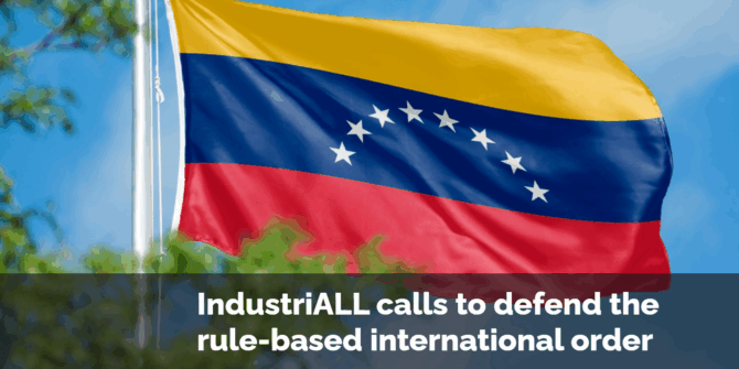 インダストリオール・グローバルユニオンは、国際労働組合総連合(ITUC)および米州地域組織(TUCA)が発表した声明を支持し、米軍によるベネズエラ攻撃と主権侵害を非難している。これは明らかな国際法違反であり、容認できない。世界のいかなる地域においても、政権交代の強制は受け入れられない。私たちは大統領夫妻の即時釈放を求める声を支持するとともに、早急に対話を再開し、この地域で平和と主権、自己決定権が守られるようにすること求める。
