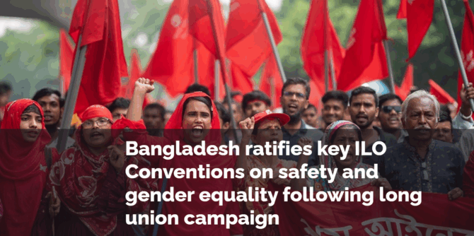 長期にわたる組合キャンペーンの結果、バングラデシュが安全とジェンダー平等に関する主要ILO条約を批准