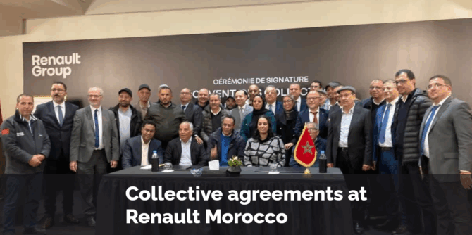 インダストリオールはルノーとグローバル枠組み協定を締結している。この協定を通してルノーは、サプライヤーと協力して労働者・労働組合の基本的権利に従うようにすることを約束している。この問題は、2024年、2025年に開かれたモロッコの組合とルノー経営陣との何度かの会合と、インダストリオール・ルノーMENA組合協議会で取り上げられた。インダストリオールは現在、モロッコのルノー事業で、同社および組合と連携して公正な移行に関するプロジェクトも実施している。