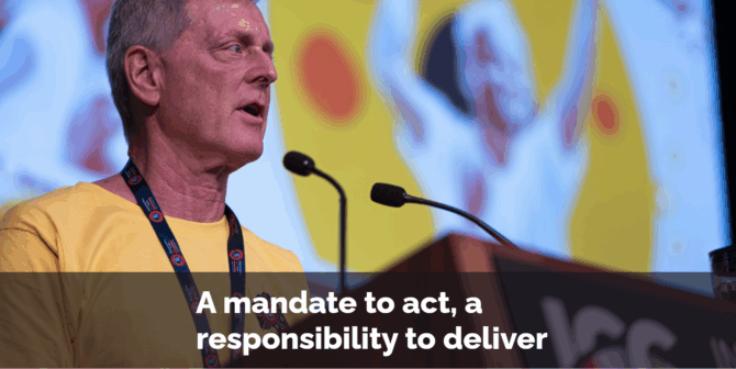 大会は私たちに明確なマンデートを与えた。この1年間に、何が可能かということが明らかになった。私たちは、自分たちの総合力に自信を持ち、連帯を基礎に、すべての場所で労働者の権利と尊厳を擁護することを約束して、一緒にその未来に足を踏み入れる。