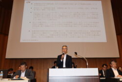 今大会をもって退任される8名には金子議長から表彰状が授与され、退任役員を代表して、中田前事務局次長、中井前常任幹事が挨拶をした。退任役員は以下のとおり。