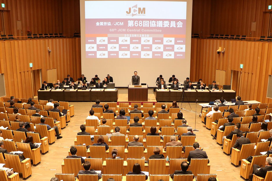 金属労協(JCM)は2025年12月3日(水)、東京国際交流館・プラザ平成で第68回協議委員会を開催した。本協議委員会には、協議委員100名(うち委任状2名)と役員25名が出席した。女性参加比率は41.8%(41名)だった。また、闘争方針の内外への情報発信のためインターネットでの配信も行い、会場およびYouTubeを通して全体で約70名が傍聴した。概要は以下のとおり。